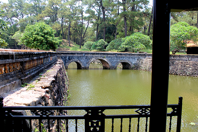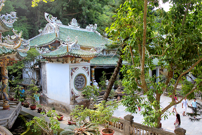 Bref, c’est un épisode que je préfère oublier, mais qu’il ne m’est pas possible de passer sous silence. Arrivé à DaNang, le bus nous dépose à l’entrée de la ville, où les taxis ne sont pas légion, mais bon j’ai réussi à en capter un une dizaine de minutes après mon arrivée qui m’a déposé à mon hôtel. Cet Hotel est l’Hotel Varna, qui est de l’autre côté de la rivière, le côté le plus calme, le côté opposé étant une succession de bars, boutiques, restaurants, marchés etc. Cet hôtel qui a dû être il y a encore quelques années un établissement de luxe a gardé sa prestance et le personnel est d’une extrême gentillesse. A noter que lorsque j’y suis allé, il n’y avait pas de coffre dans les chambres. Il faut donc laisser son argent et cartes etc dans une enveloppe bien fermée à la réception. Le hall d’entrée est immense, genre salle de bal, avec des expos des spécialités du coin : le marbre et autres onyx. Sans que j’ai rien demandé on me donne pour une 20taine de dollars, comme réservé quelques temps auparavant, un énorme surclassement. J’ai une suite, deux pièces avec un balcon avec vue sur la rivière et sur tous les ponts. Rien que pour cela, je garde un souvenir exceptionnel de cet hôtel. Il aura toutefois deux inconvénients : le personnel ne parle pas un mot d’anglais, et encore moins de français. Alors pour demander un tire bouchon, par exemple, imaginez les mimes à réaliser. Mais ça a un côté amusant. Le second, c’est le petit déjeuner. A bannir. Sauf si on peut manger des soupes, et des plats riches le matin vers 8h00. En revanche, vous avez l’occasion de louer un scooter au garage au sous-sol. C’est vraiment pas cher, et cela vous permet de vous déplacer quand vous le voulez.