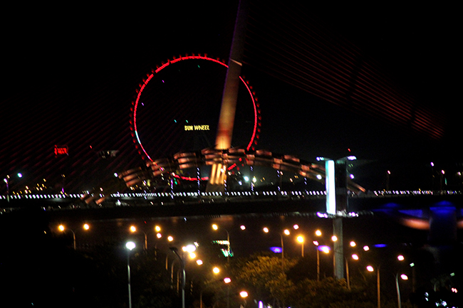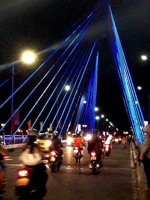 Donc le soir, c’est vue des ponts illuminés, de la grande roue au loin, et des bars, où vous trouverez toujours quelqu’un pour vous aider dans les choix des restaurants, si ceux des guides Routard et Petit Futé ne vous plaisent pas. Bien entendu il y a toujours les marchés, mais on ne peut pas dire que celui de Danang surpasse ceux de Saigon ou de Hue. Une petite visite devrait suffire.